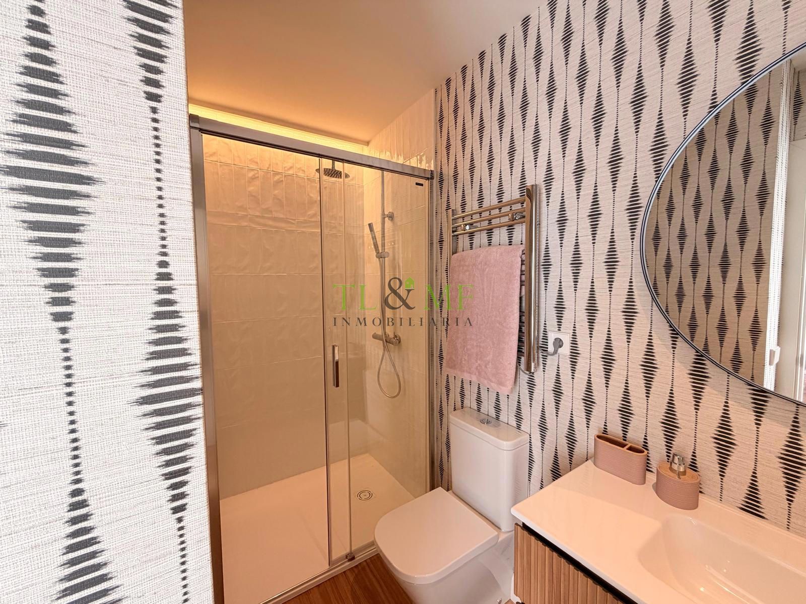 - En la primera planta se encuentran los dos dormitorios, ambos con cuarto de baño. El dormitorio principal, de muy buen tamaño, con un precioso cuarto de baño. Completamente exterior.