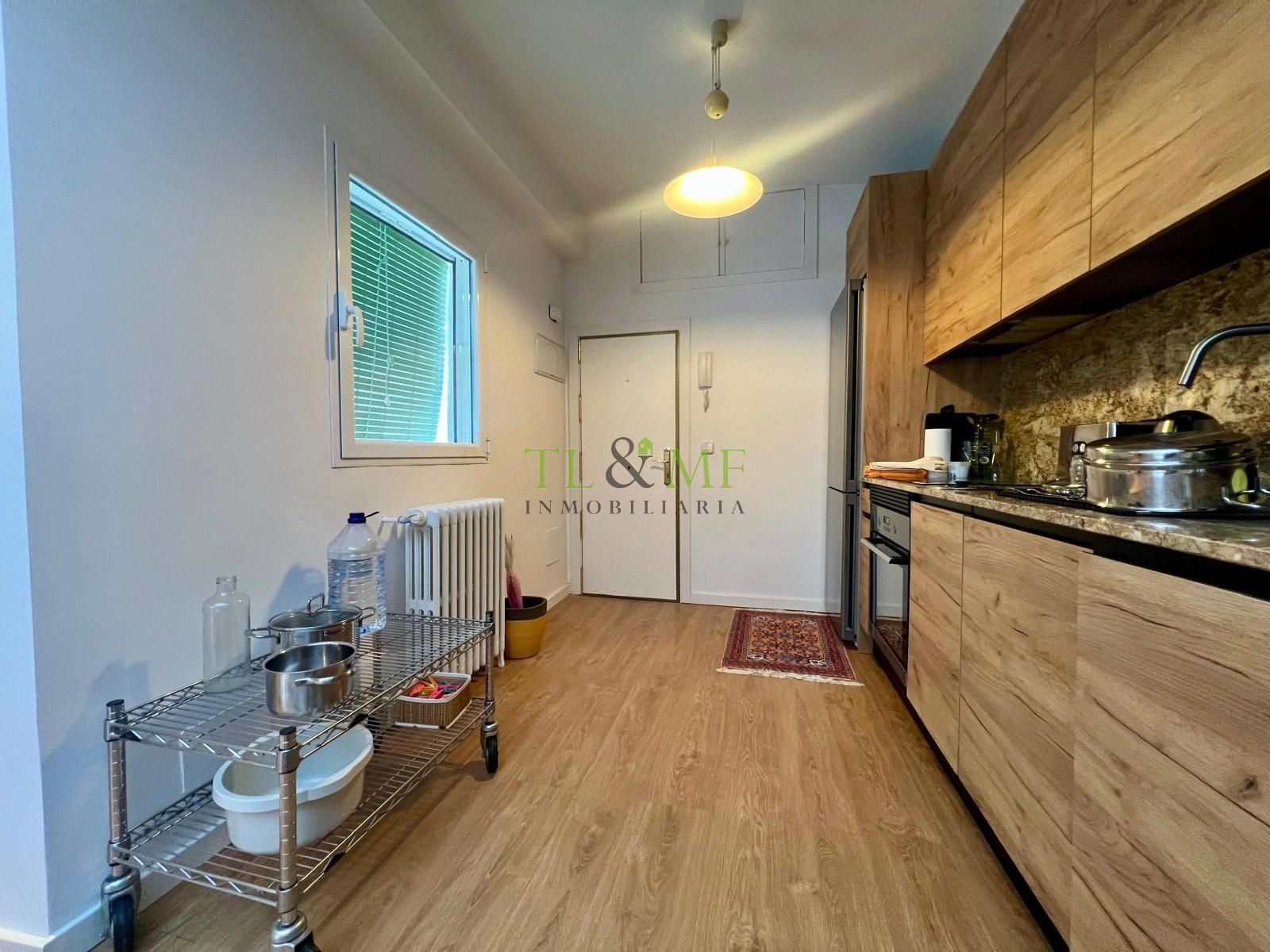 Cuenta con una amplia cocina completa con electrodomésticos de primeras marcas. Al estar integrada en el salón, ofrece mucha amplitud y versatilidad en los espacios. El cuarto de baño con ventana es grande y tiene ducha. El dormitorio es muy luminoso y tiene armarios.