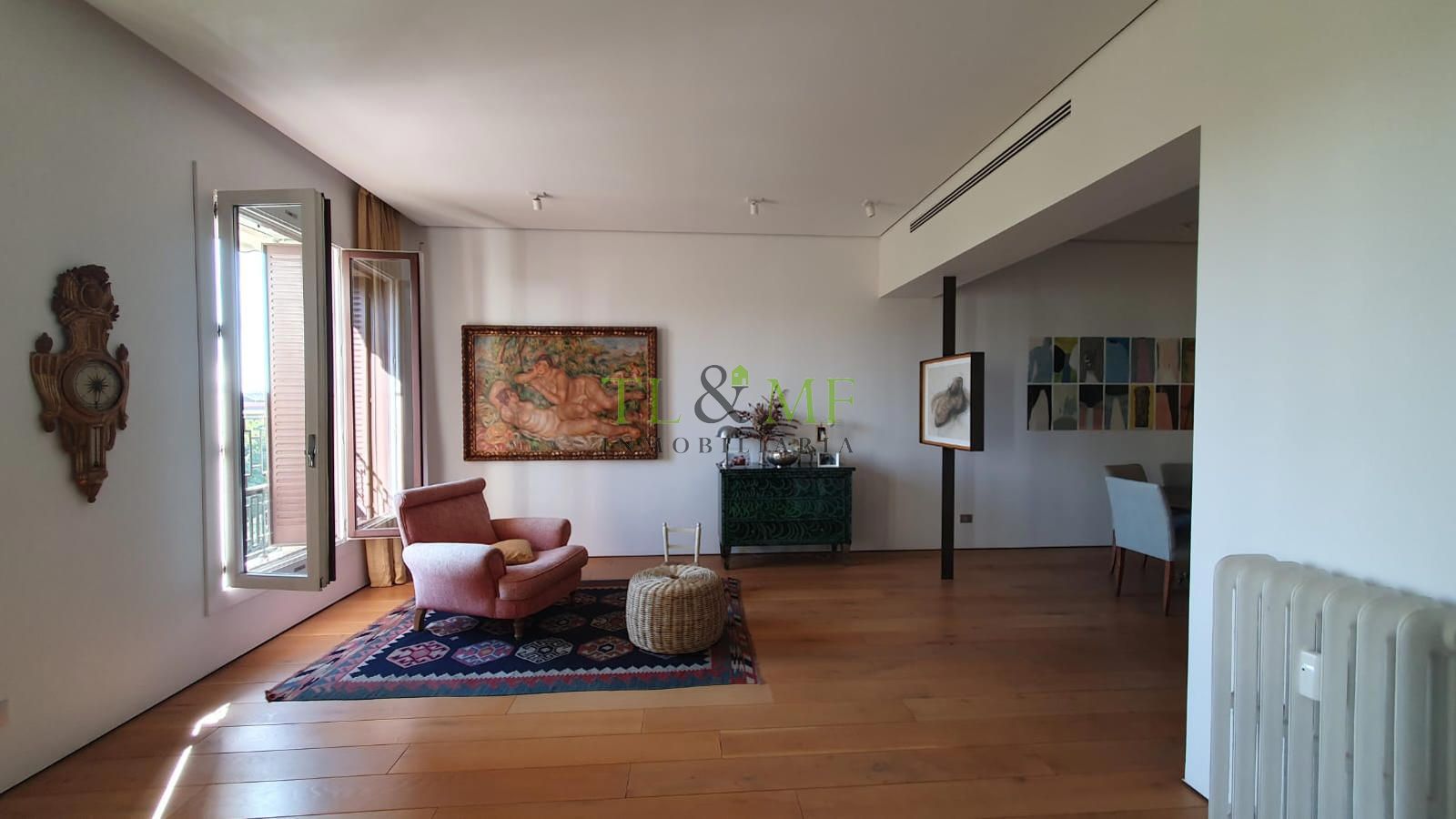 Reformado con gusto impecable, el piso consta de hall de gran tamaño que da acceso a través de unas grandes puertas correderas a la zona de salón, que se divide en dos ambientes, con comedor independiente. Aseo de visitas.