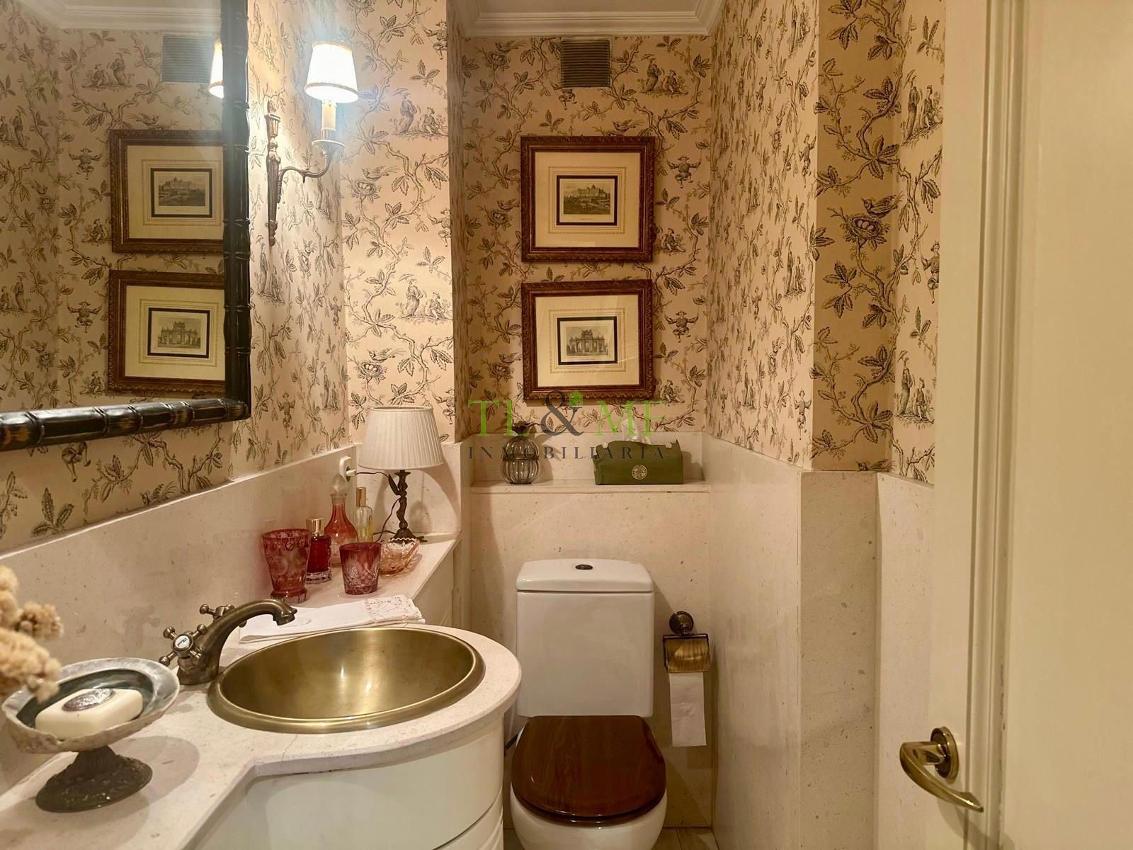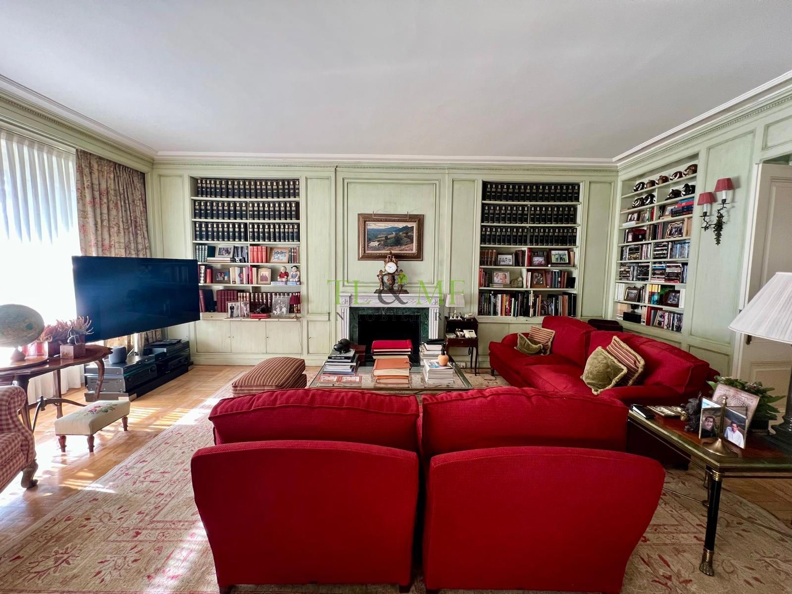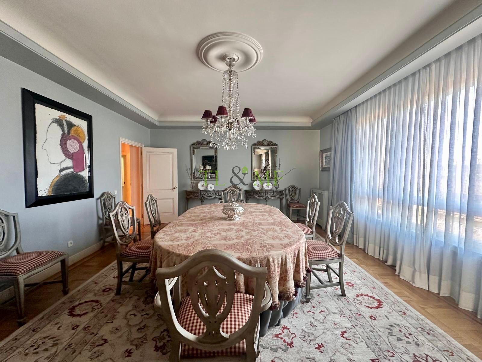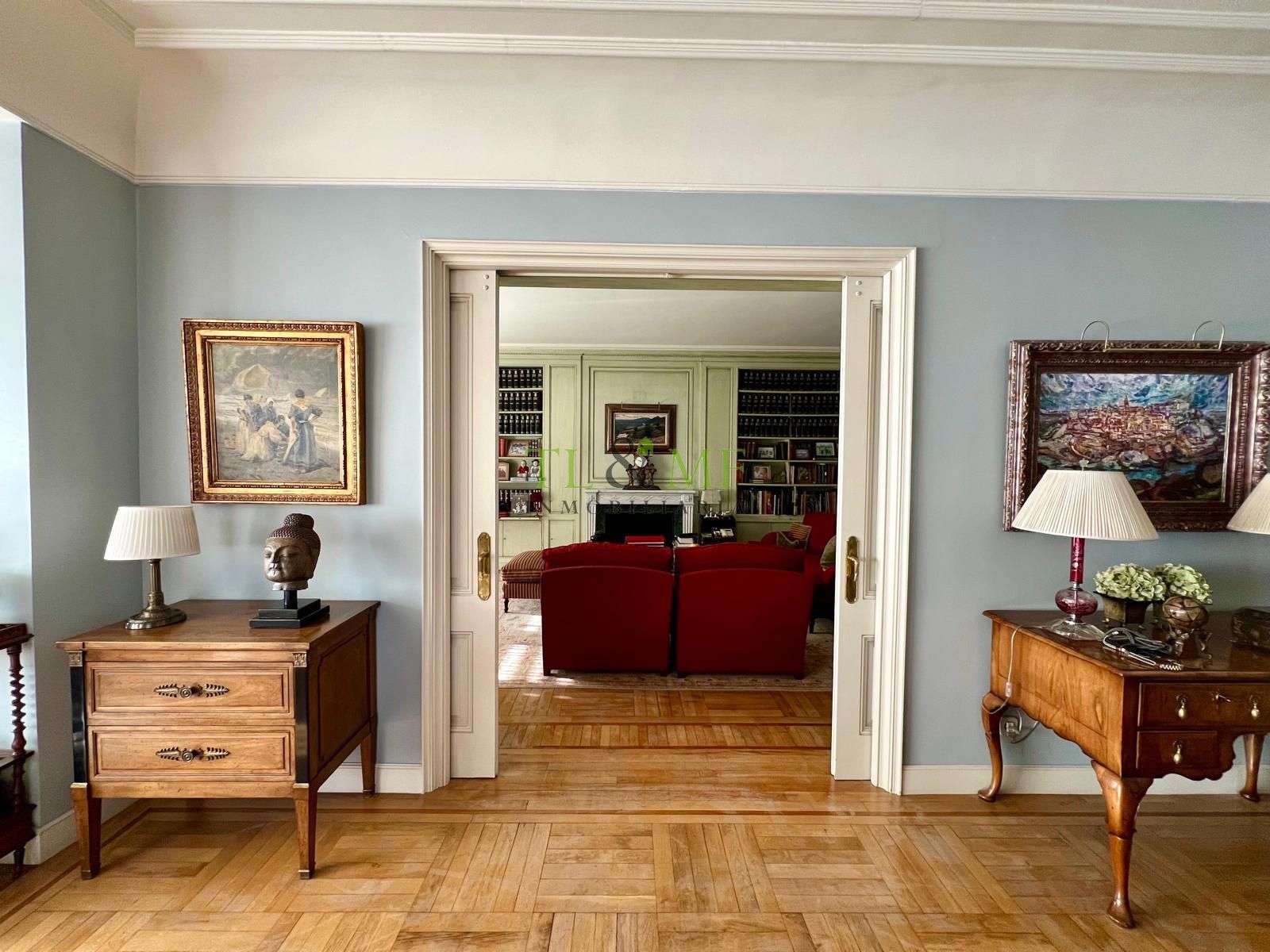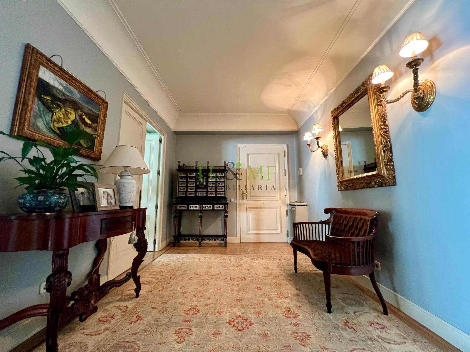 Techos de tres metros de altura. La vivienda consta de una amplísima zona de recibo. Gran hall de entrada, biblioteca independiente o sala de estar, gran salón y comedor independiente. El salón tiene una terraza que, actualmente, está incorporada a la vivienda pero podría abrirse fácilmente. Aseo de visitas.