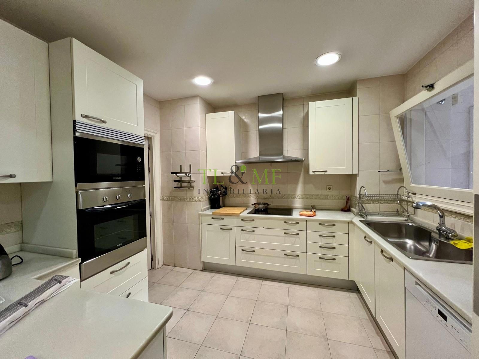 A través de un pasillo de muy buen tamaño, se accede a una gran cocina independiente, con zona de office y gran despensa. Dormitorio y cuarto de baño de servicio. Puerta de servicio con dos montacargas.